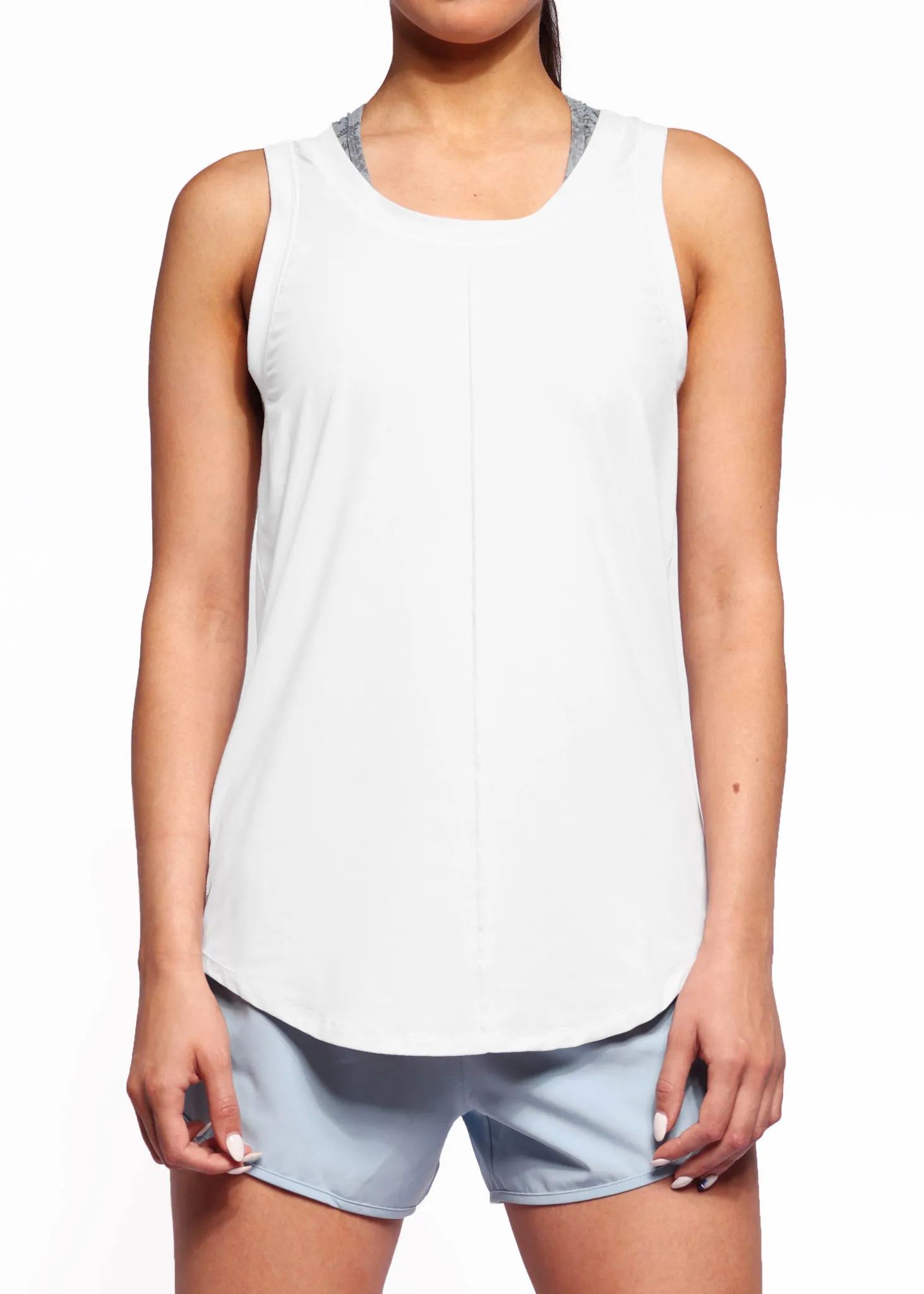 This luxurious performance tank top is great for pairing with your favorite bra top as you move throughout your day or your run in comfort and style.