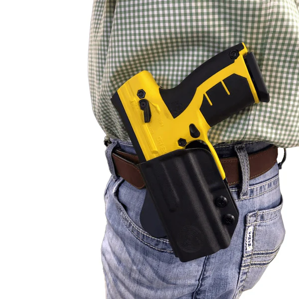 Our fully-adjustable waistband holster has been custom fit for the Byrna HD and Byrna SD. This holster will ensure that your Byrna stays secure by your side. Launcher not included.